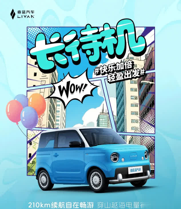 微型车新成员睿蓝蓝气球官图发布,纯电续航210km